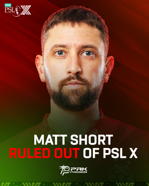 ইনজুরির কারণে টুর্নামেন্ট থেকে ছিটকে গেছেন ইসলামাবাদ ইউনাইটেডের ওপেনার ম্যাথু শর্ট। পাকিস্তানে পৌঁছেও ব্যথা থেকে রেহাই পাননি এই অজি ব্যাটসম্যান। ক্রিকেট অস্ট্রেলিয়া ও ইউনাইটেড মিলে সিদ্ধান্ত নেয়, তাকে দেশে পাঠিয়ে পুনর্বাসনে পাঠানো হবে।